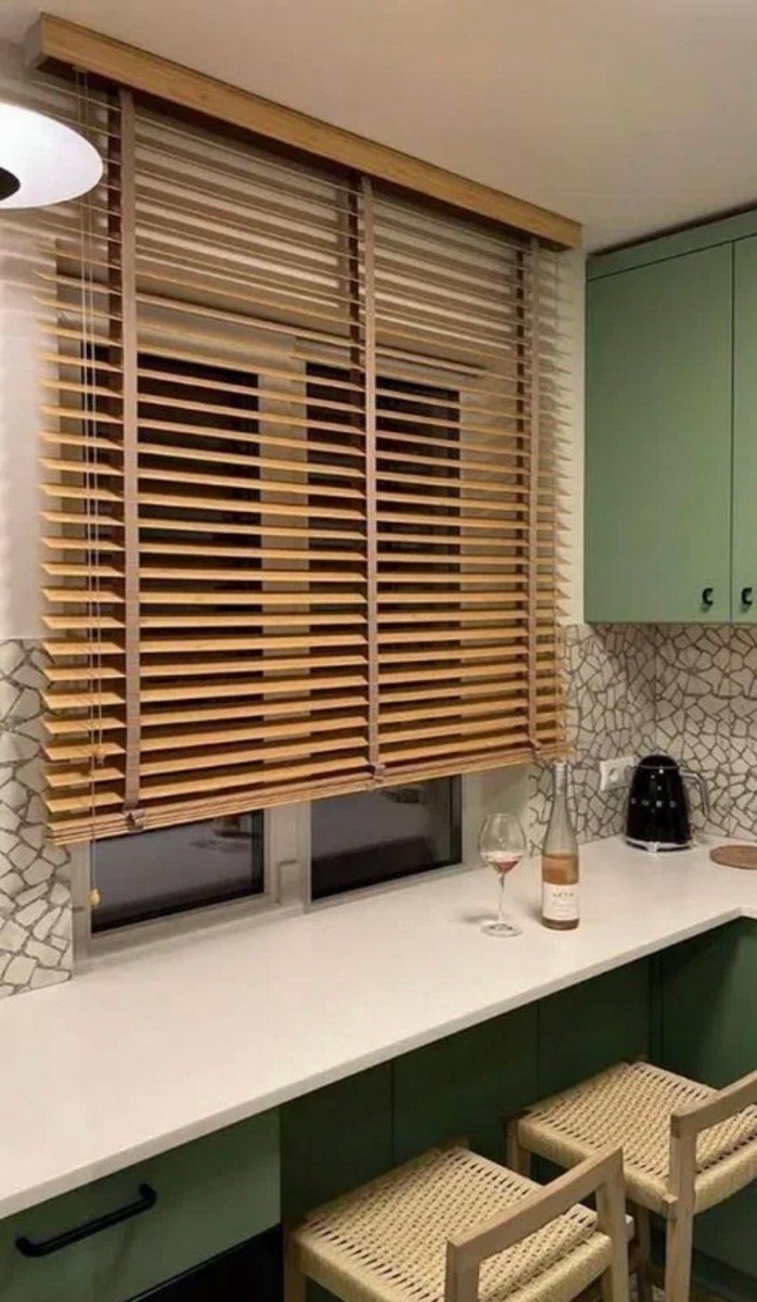 Жалюзи выполненные с ламелями из дерева/бамбука/ПВХ имеют специальное лаковое покрытие которое защищает их от выцветания и повышает их влагостойкость.