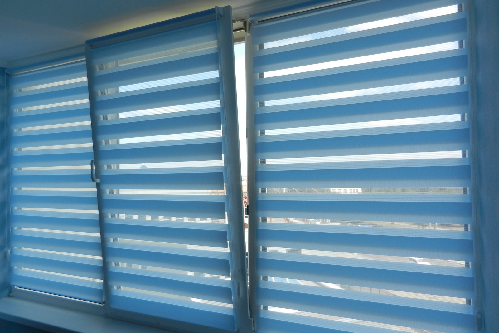 Такое название система получили за счёт того что, в производстве используется ткань, чередующая прозрачные и непрозрачные полоски, которые при наложении друг на друга перекрывают полностью или частично световой проём.