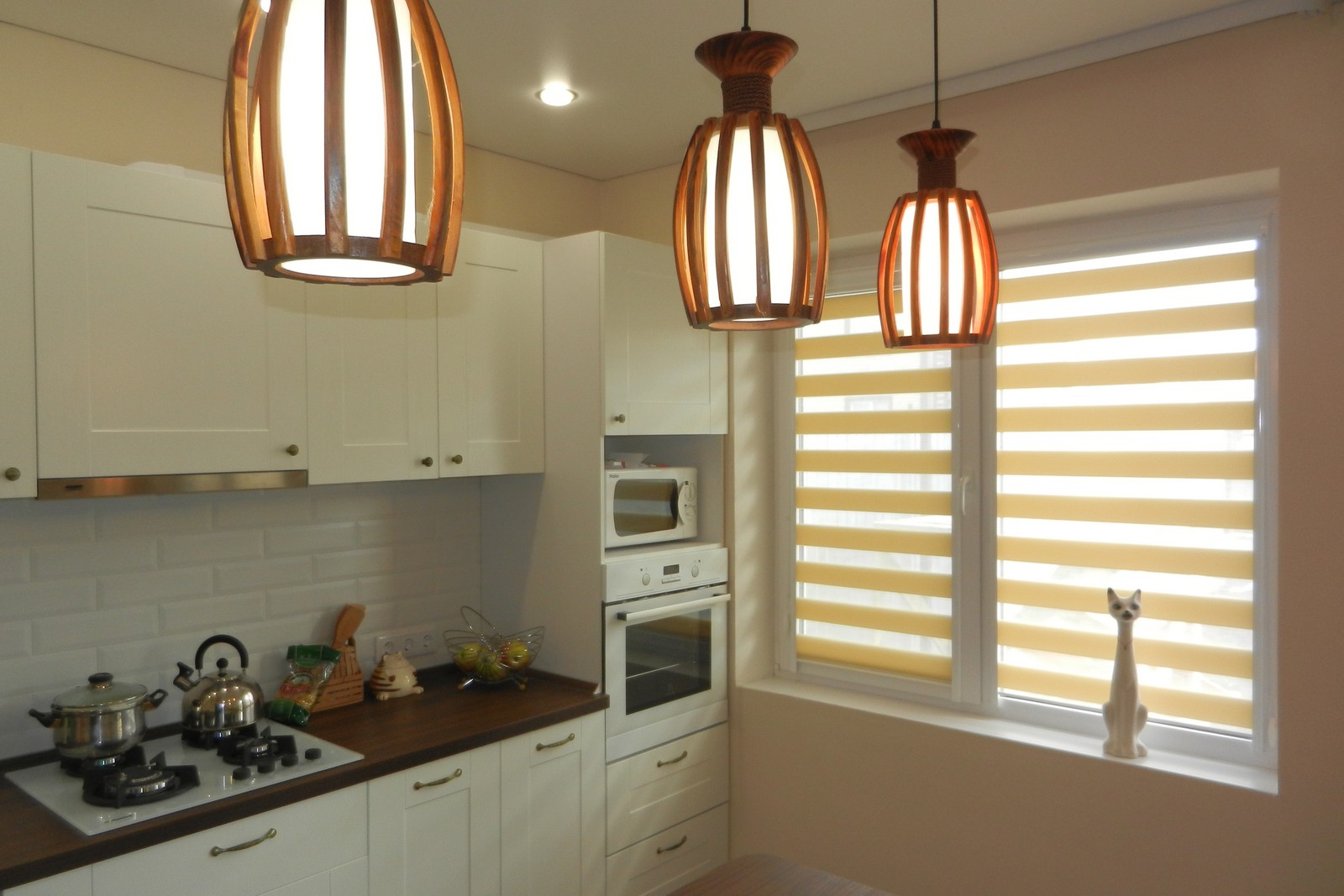Если шторы установлены на кухне и окно находится рядом с плитой то в процессе приготовления пищи их так же лучше свернуть, что - бы не допустить попадания жира.